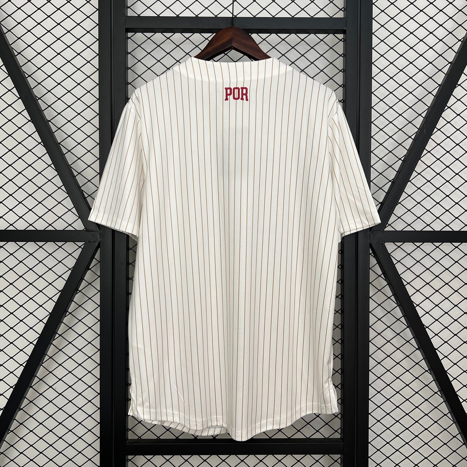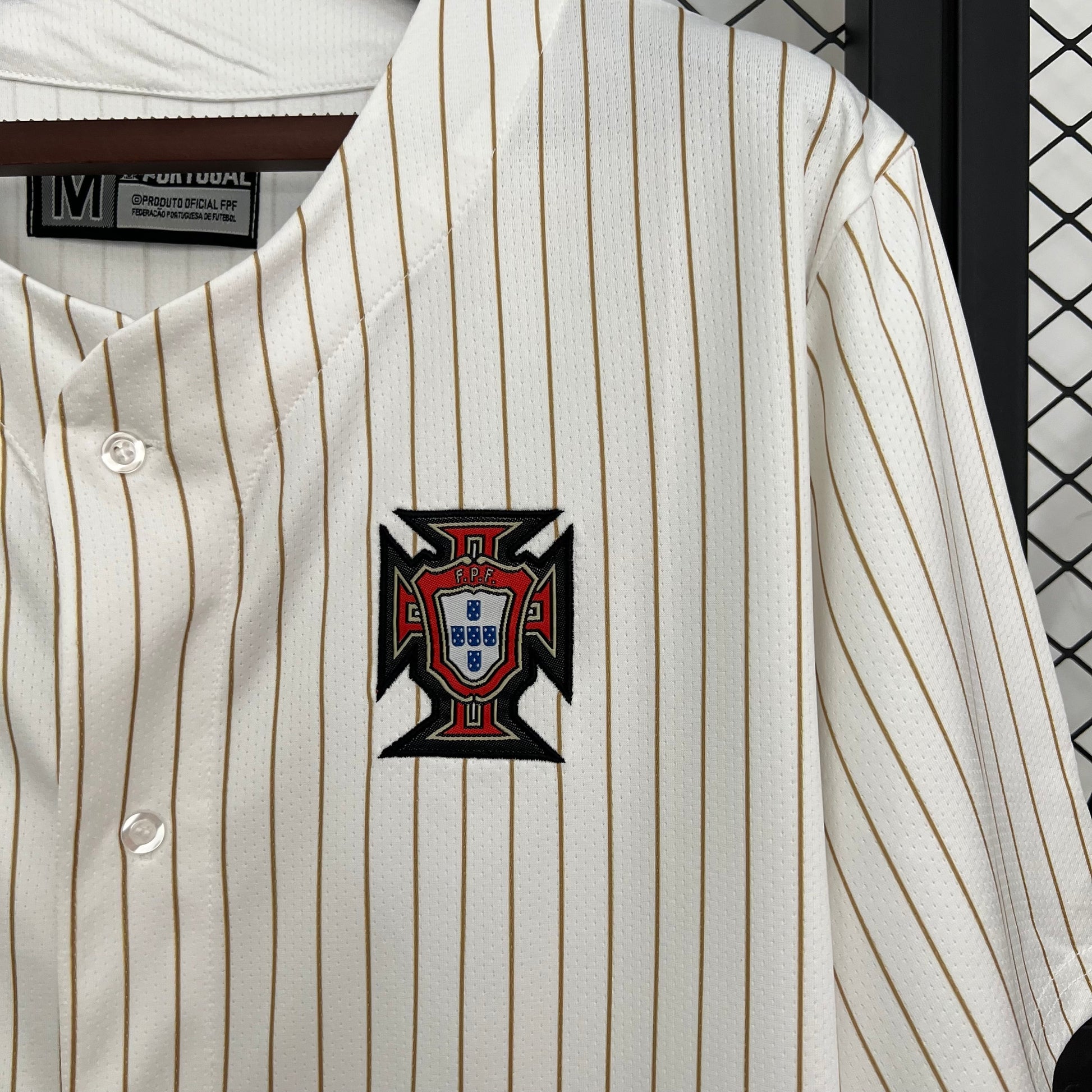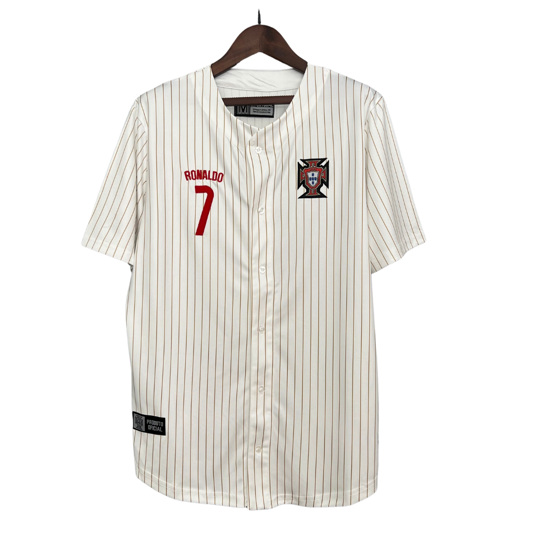 La beisbolera de Portugal rinde homenaje a la garra y elegancia de la selección lusa con un diseño blanco de finas líneas rojas, acompañado del escudo nacional y el mítico número 7 de Ronaldo. Una prenda única que fusiona la pasión futbolera con el estilo urbano, perfecta para quienes llevan a Portugal en el corazón dentro y fuera de la cancha.
